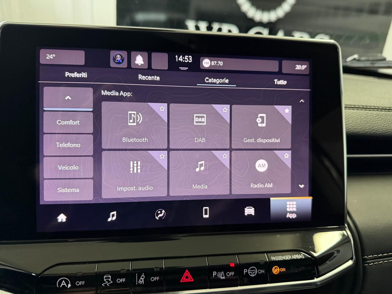 Intrattenimento e media: Schermo multifunzione digitale, touchscreen, sistema di navigazione, volante multifunzione